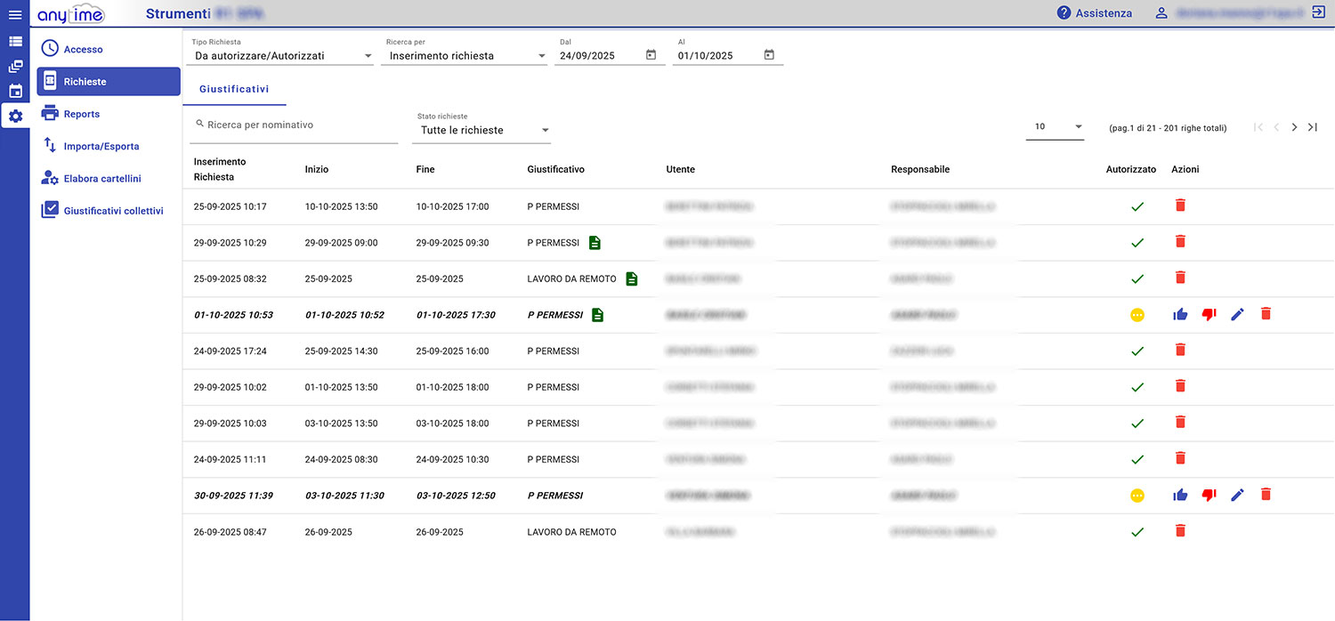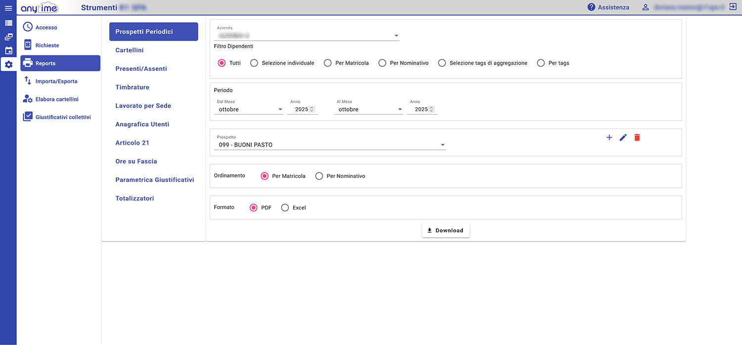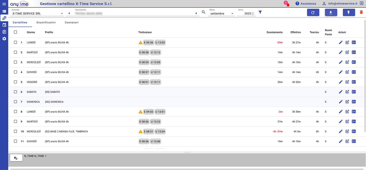 La piattaforma è intuitiva e completa, permettendoti di configurare ogni aspetto della gestione oraria in modo granulare.